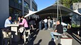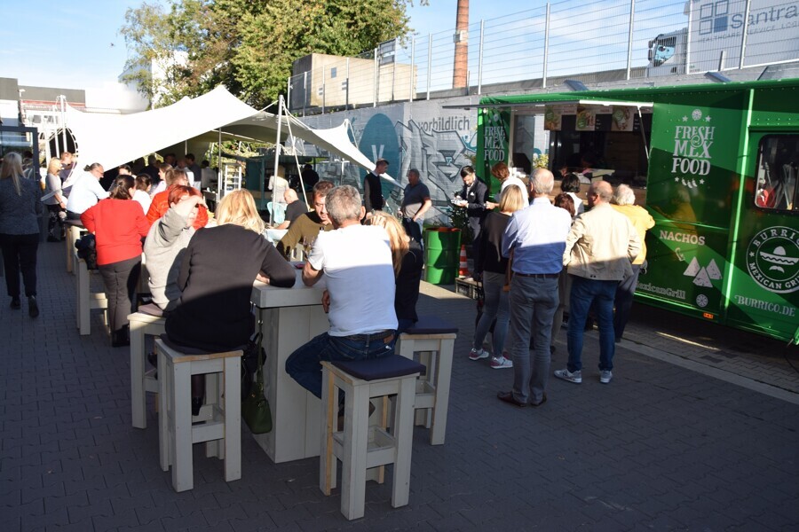 Im Außenbereich konnten sich Zahnärzte an den Food Trucks verköstigen und mit Kollegen austauschen. © DTI