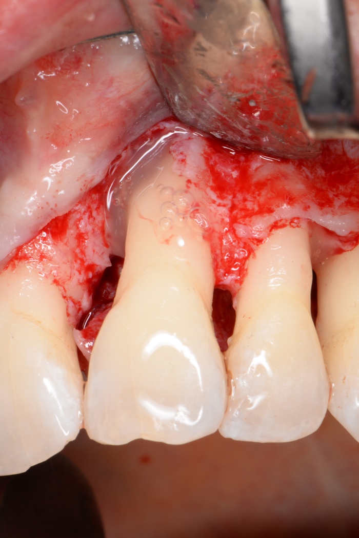 Welchen Einfluss hat das bakterielle Gleichgewicht im Mund auf die Behandlung? Einen großen Einfluss. Sowohl die antiinfektiöse Therapie, um das bakterielle Gleichgewicht nachhaltig zum Positiven zu verändern, die direkt präoperativ durchgeführt antimikrobielle Behandlung, um die Bakterienzahl vor dem parodontalen Eingriff zu minimieren, als auch die postoperative Infektionskontrolle haben einen deutlich positiven Effekt auf das Ergebnis der Regeneration.