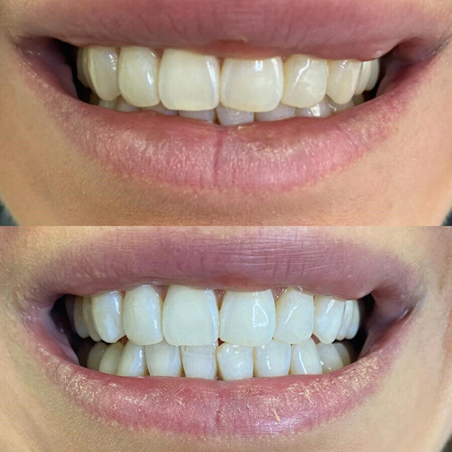 Um die Ergebnisse zu erhalten, können Patienten die Schiene und das Gel in größeren Abständen weiterhin benutzen. Auch die Evo-White-Zahnpasta von Enlighten trägt nach der abgeschlossenen Behandlung dazu bei, erneute Verfärbungen zu verhindern und die Farbaufhellung aufrecht zu erhalten. Die Nachdunkelung der Zähne fällt dank dieser Zahnpasta deutlich geringer aus, als bei anderen Bleaching-Produkten, so Junghanns.